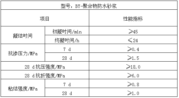 聚合物水泥防水砂漿由水性高分子聚合物膠乳、普通硅酸鹽水泥、石英砂為主要成分,并加入多種改性助劑配制而成。聚合物水泥防水砂漿具有較好的抗?jié)B性能,可采用薄層抹灰施工,同時(shí)該產(chǎn)品還具有一定的柔性和較好的粘接、防裂性能。由于采用水性聚合物膠乳作為改性成分,無有機(jī)溶劑揮發(fā),對(duì)環(huán)境無污染。