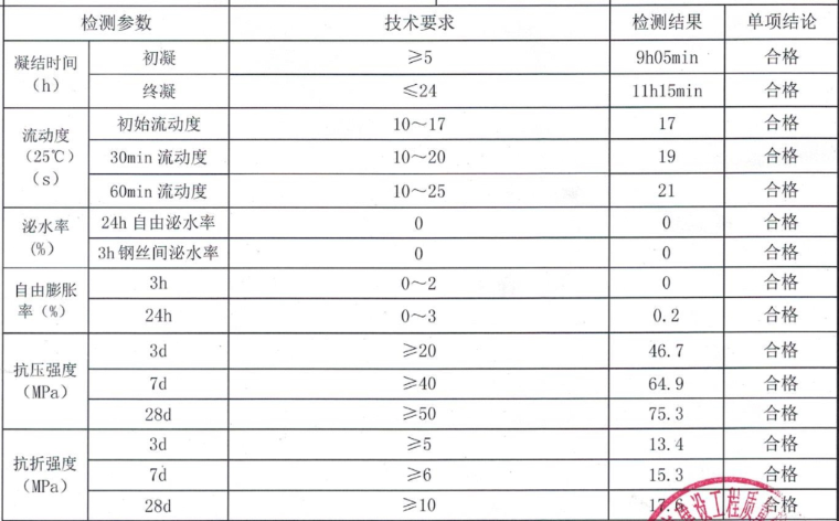 用于后張梁預應力管道充填的壓漿材料、防止預應力鋼材的防腐、保證預應力束與混凝土結構之間有效的應力傳遞,使孔道內漿體飽滿密實,漿體保持一定的PH值范圍,完全包裹預應力鋼材,漿體硬化后有較高的強度和彈性模量及膨脹無收縮性和粘接力。